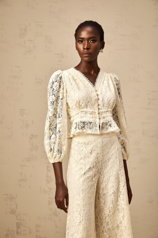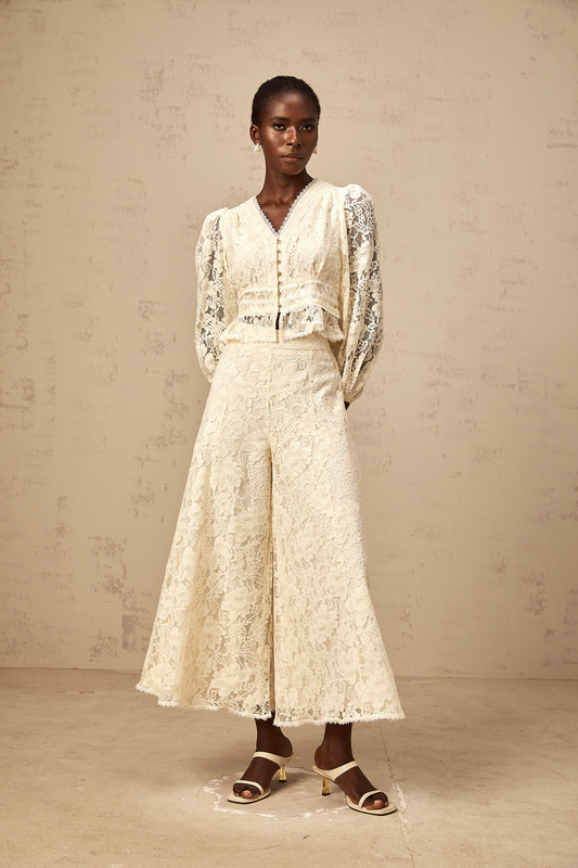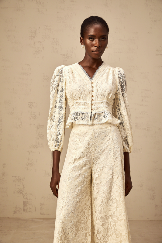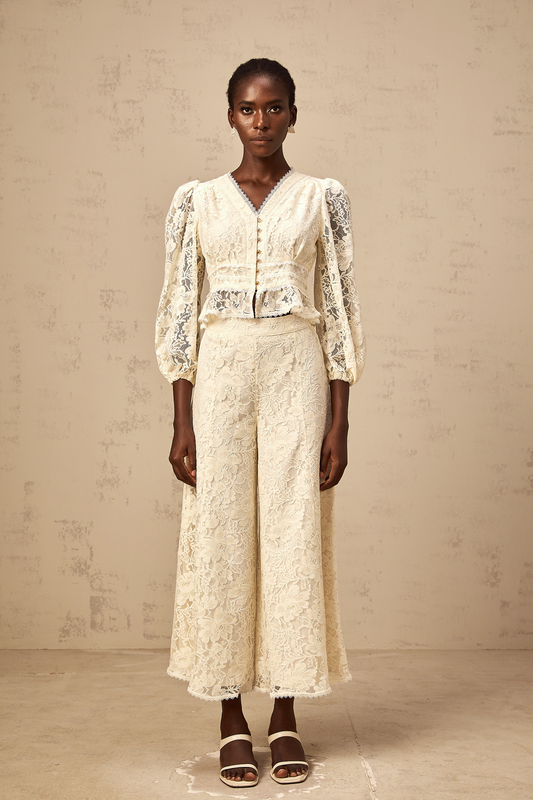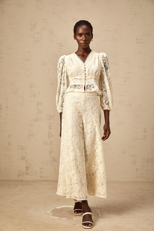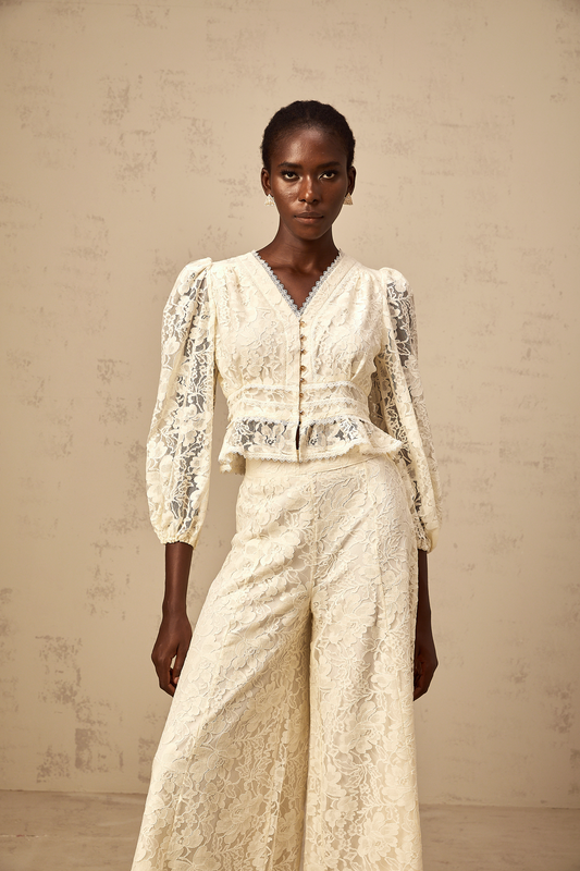 Jacinthe neutrals floral-lace blouse & trousers matching set