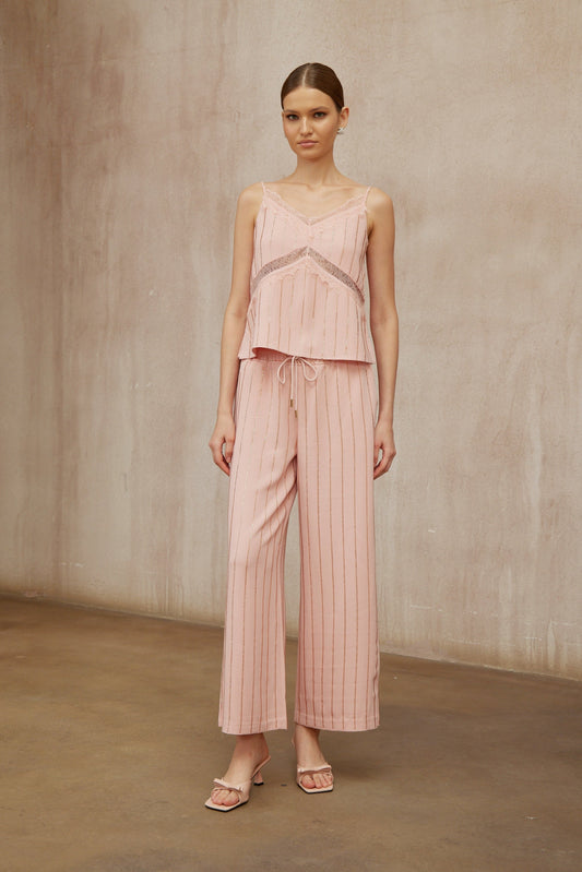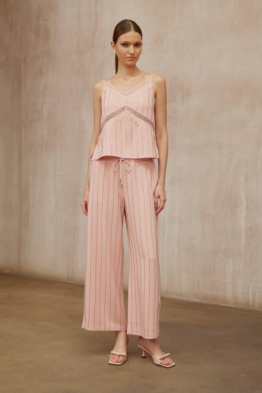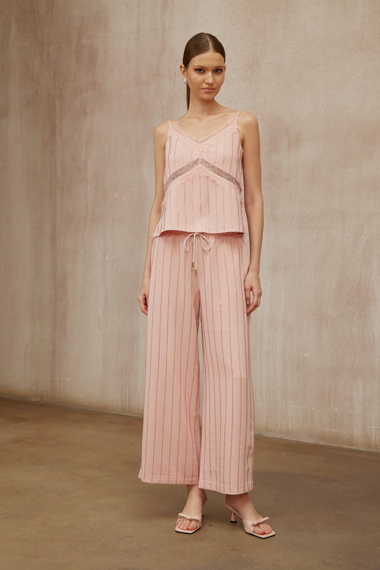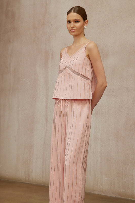 Quincie Pink Rhinestone Striped Top & Trousers Set