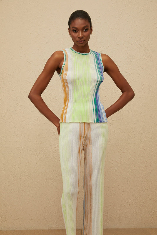 Ulysse Green Glitter Pleated Knit Top & Trousers Set