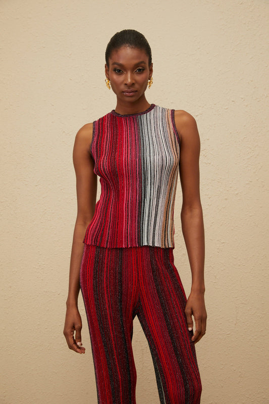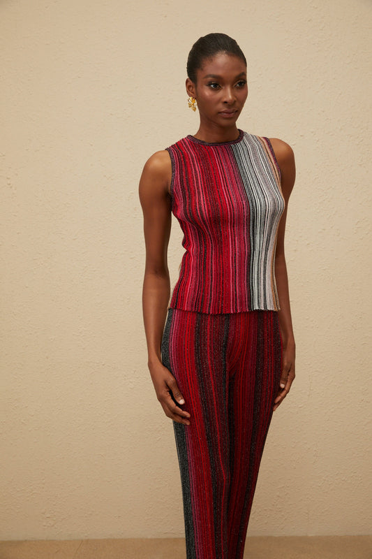 Ulysse Red Glitter Pleated Knit Top & Trousers Set