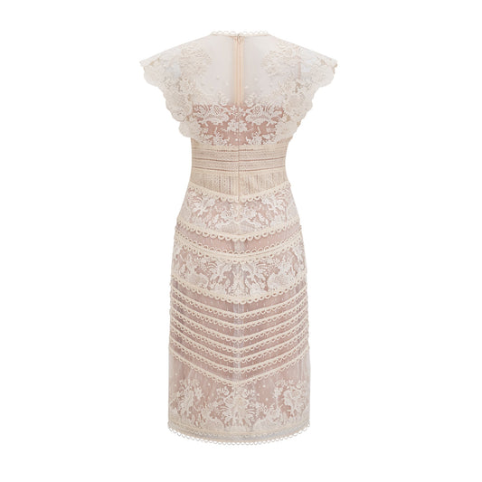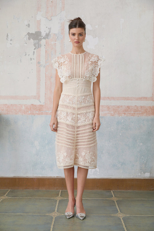 Fleur floral-embroidered lace midi dress in Neutrals