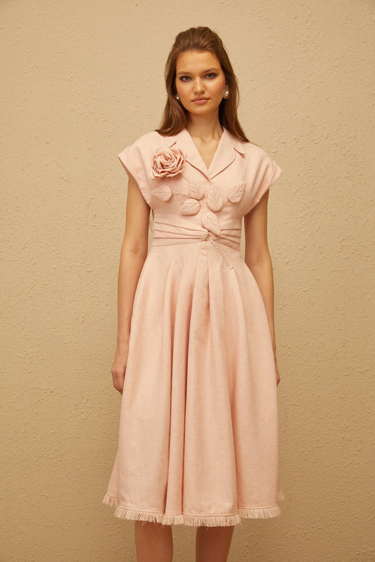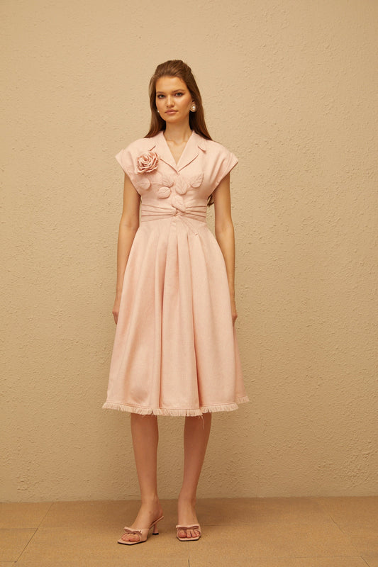 Bernadett Pink 3D Petal Pleated Midi Dress
