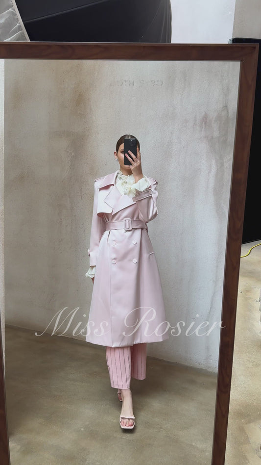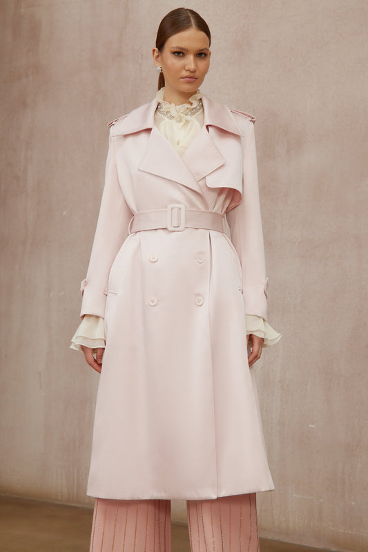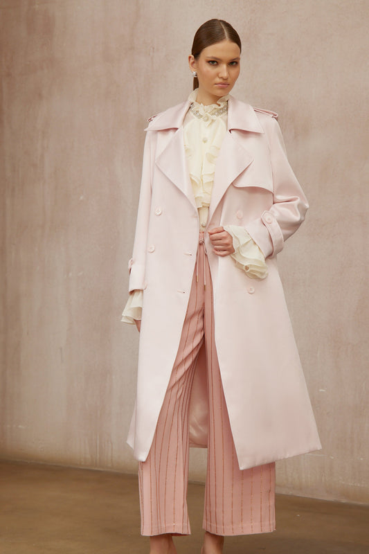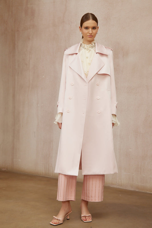 Caméo Pink Double-Breasted Satin Trench Overcoat