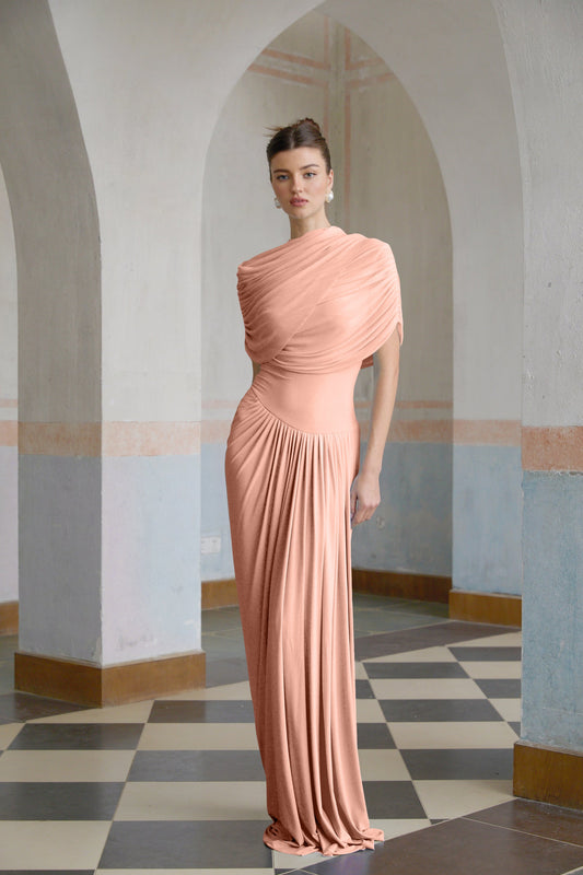 Catherine asymmetrical pleated maxi dress in Pink
