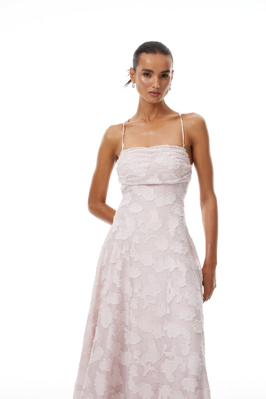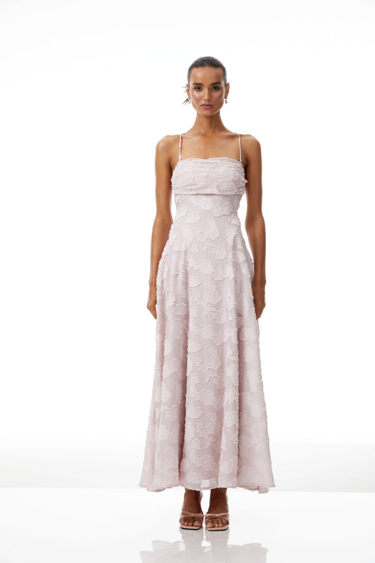 Célestine Pink Frayed Floral Embroidered Maxi Dress