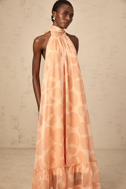 Clémence coral-pink halterneck pattern-print maxi dress