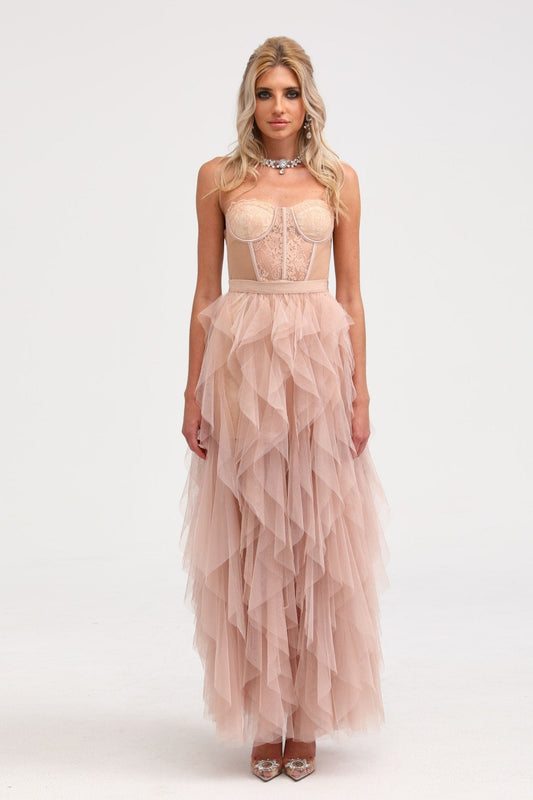 Eilís Pink Bustier Mesh Maxi Dress