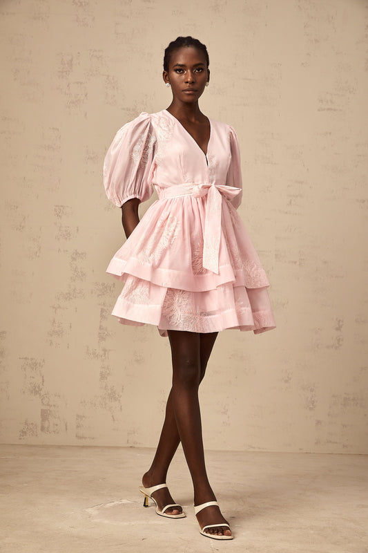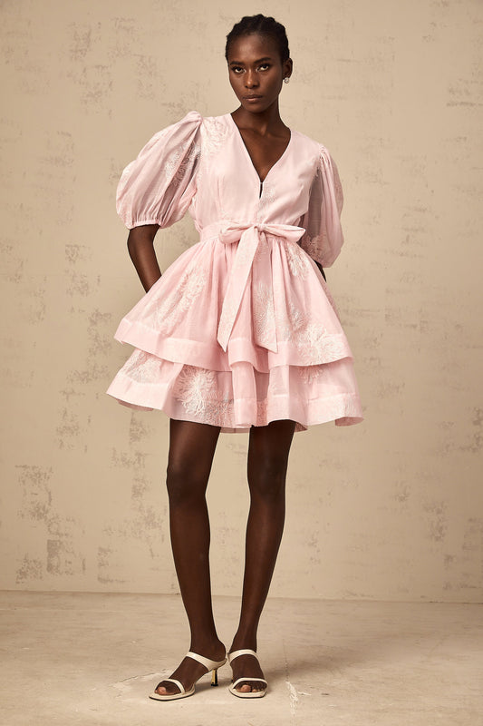 Florence pink floral-embroidered layered mini dress