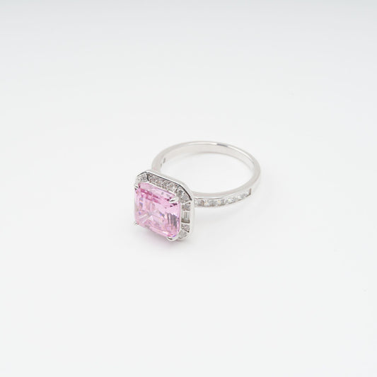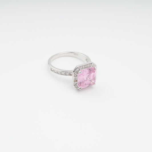 Hélène Pink Emerald Cut Zircon Gemstone Sterling Silver Ring
