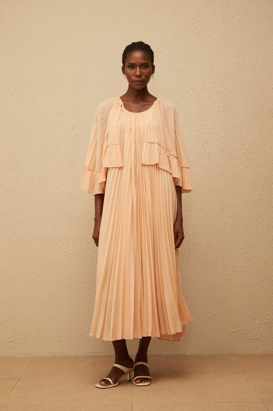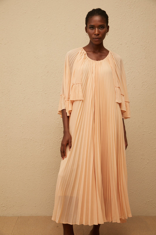 Urbaine Pink Cape Design Pleated Chiffon Midi Dress
