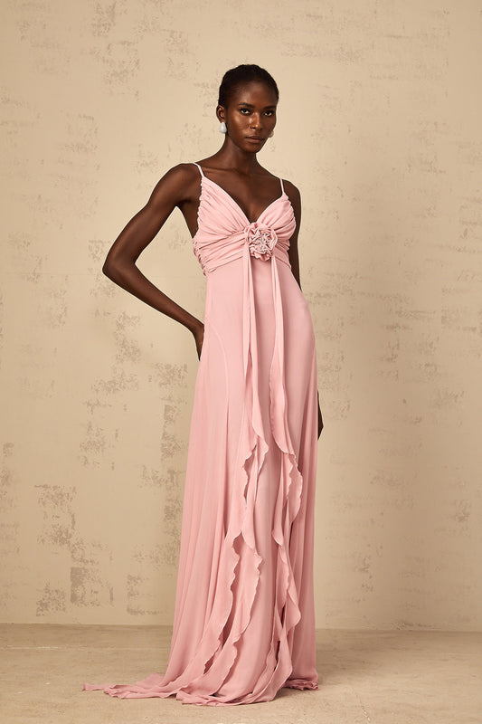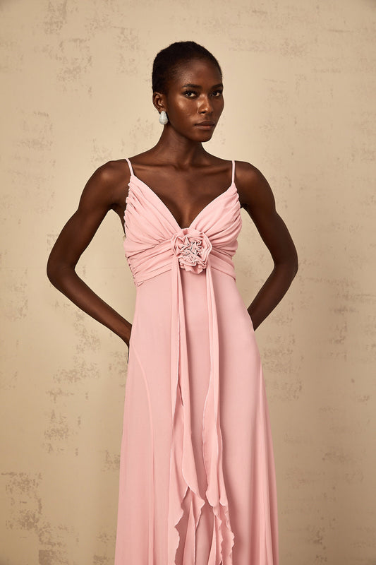 Ysandre Soft-Pink 3D Petal Tulle Maxi Dress