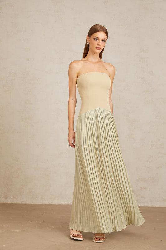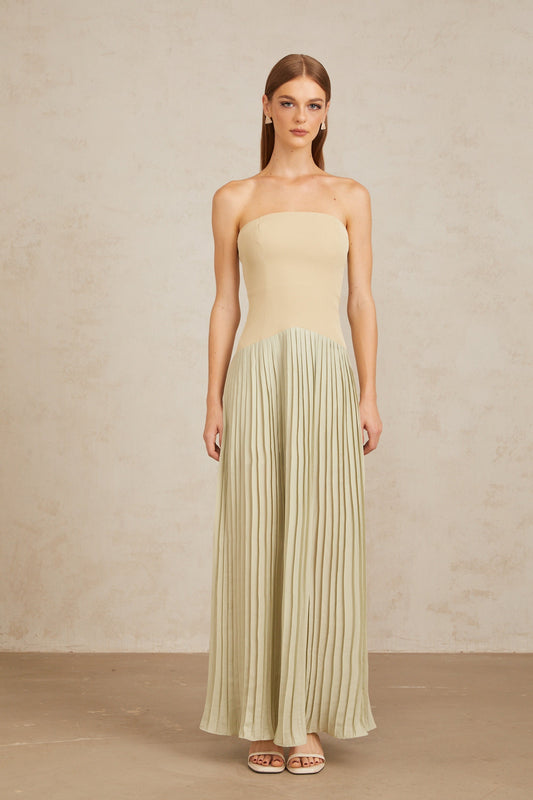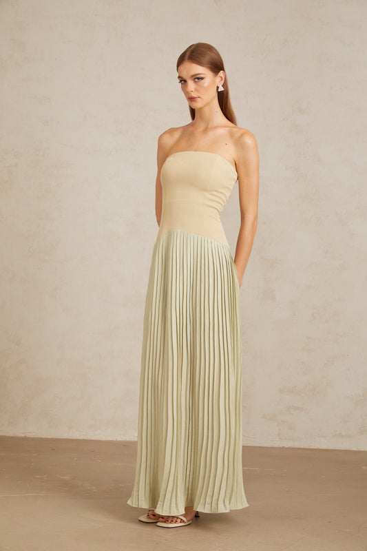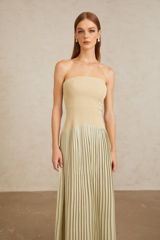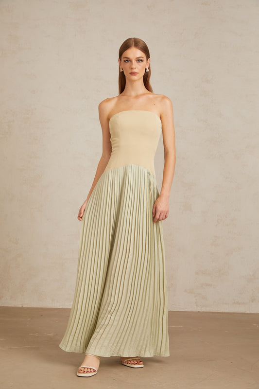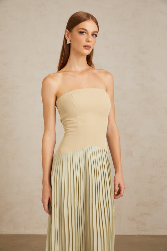 Mirja Green Pleated Corset Maxi Dress