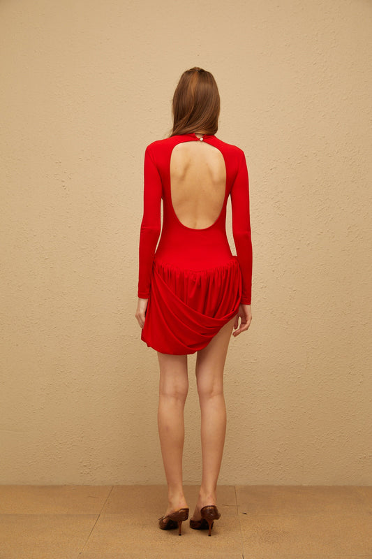 Sagesse Red Open Back Asymmetrical Mini Dress