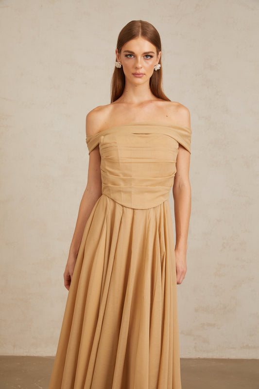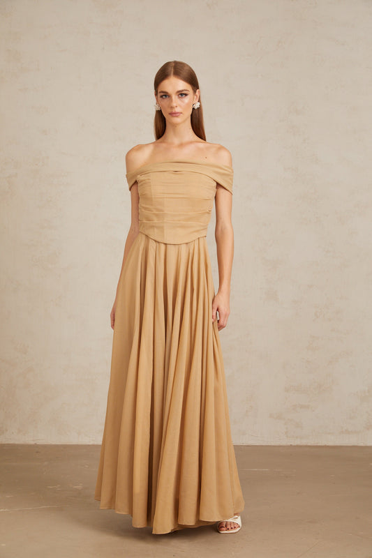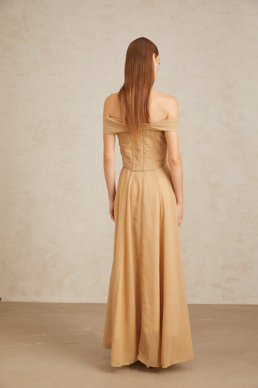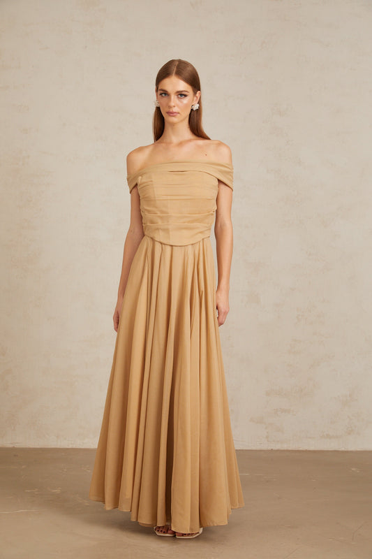 Urbaine Khaki Ruched Tulle Maxi Dress