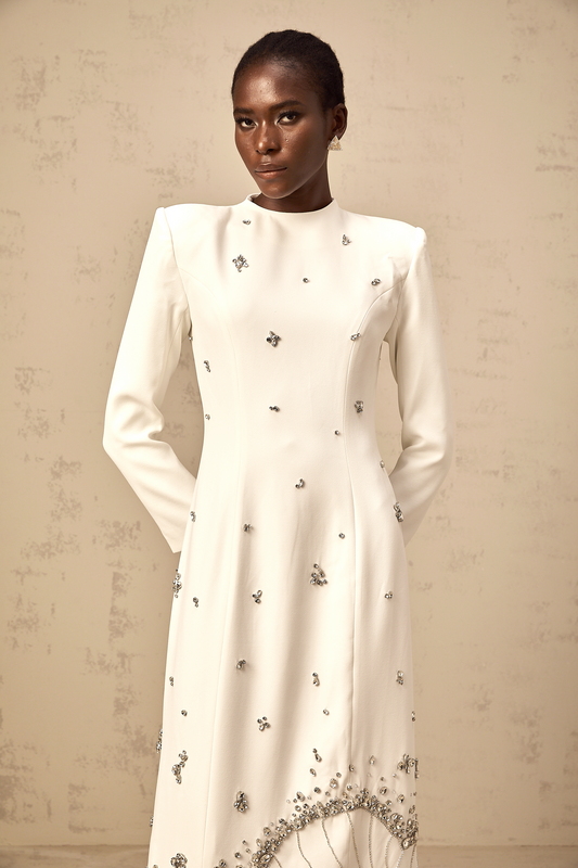 IMPORTANT NOTICE: By ordering Daphné dress, you are abiding to the fact that all crystals & rhinestones are handmade. The occasional shedding and breakage of a very small number of sequins is a normal phenomenon. Even high-end or luxury brands encounter this.