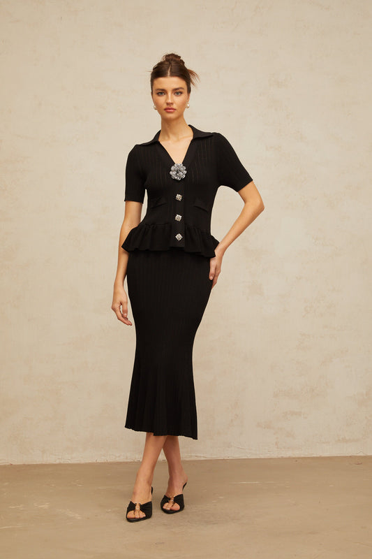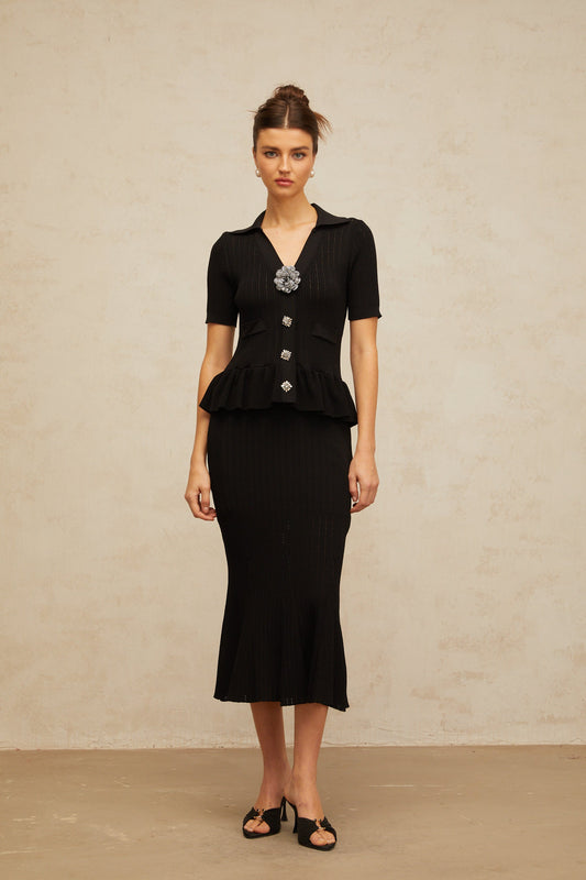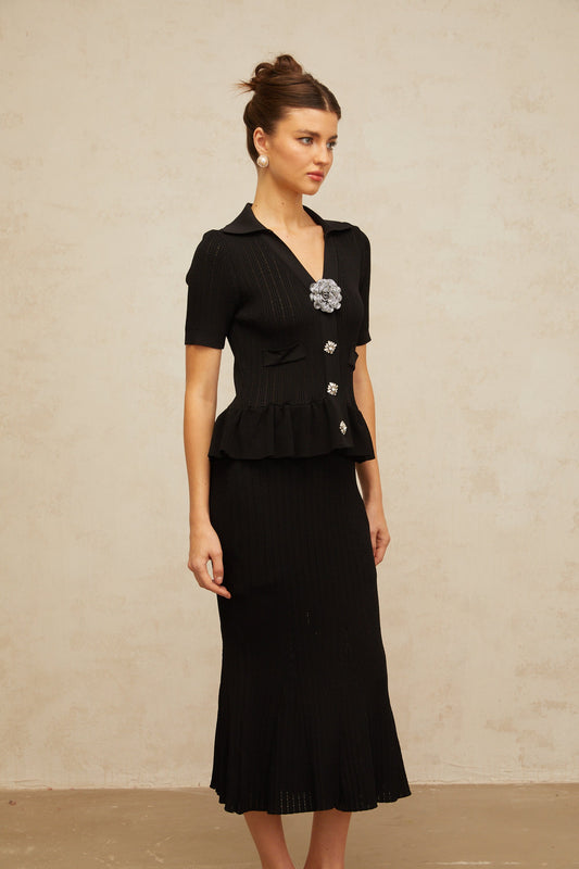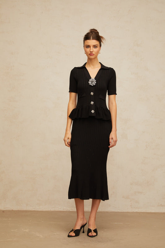 Félicie black embellished pointelle-knit midi dress (US Only)