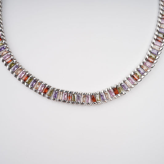 Isoline Silver Tone Crystal Embellished Necklace