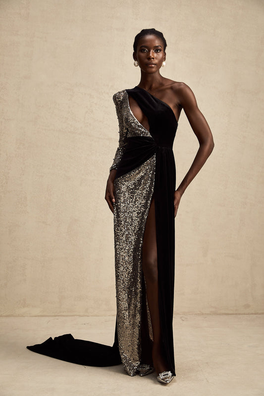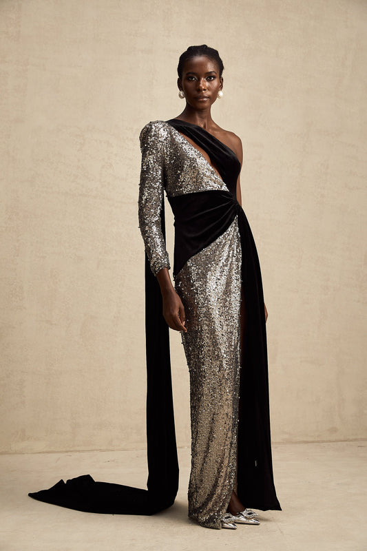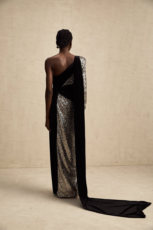 Juliette sequin-embellished asymmetrical maxi dress