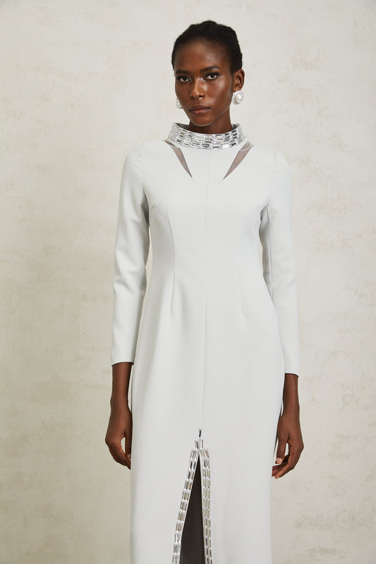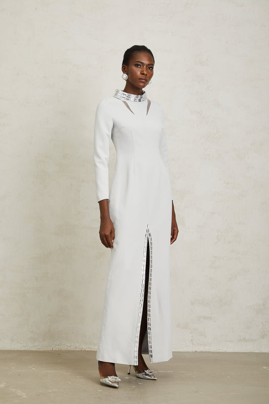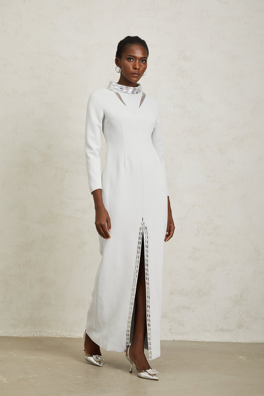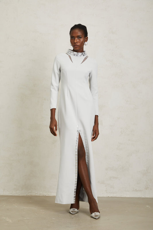 Magdalena Light Grey Crystal Embellished Maxi Dress