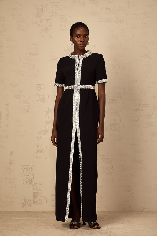 Mylène Black Front Slit Crystal Embellished Maxi Dress
