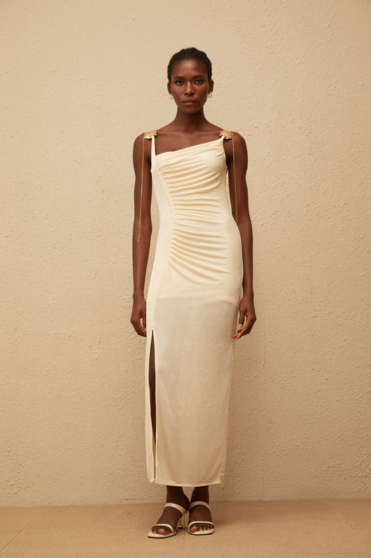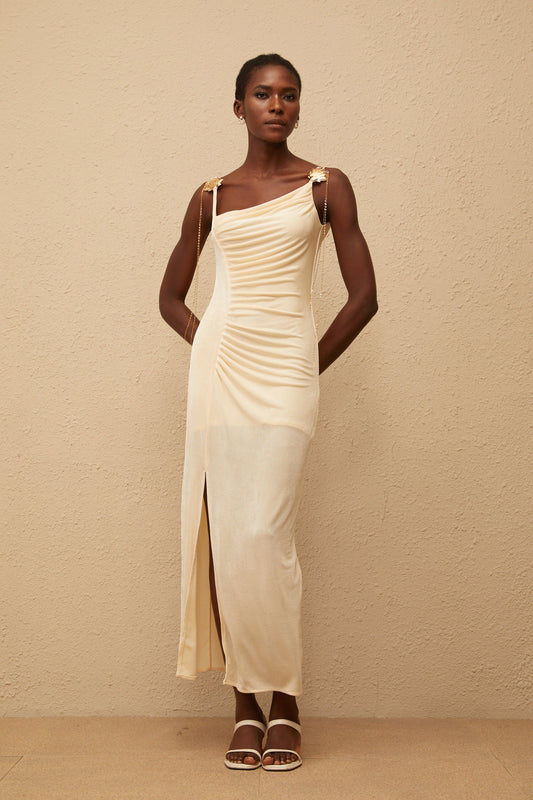 Ondine Shell Embellished Ruched Corset Maxi Dress