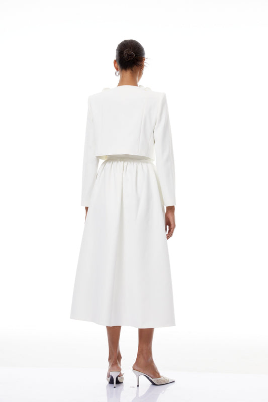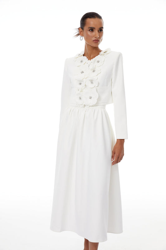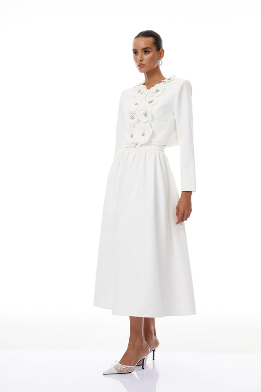 Élodie White Floral Appliqué Jacket & Skirt Set