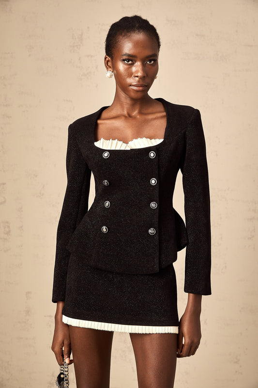 Hilaire black corduroy panelled top & skirt matching set