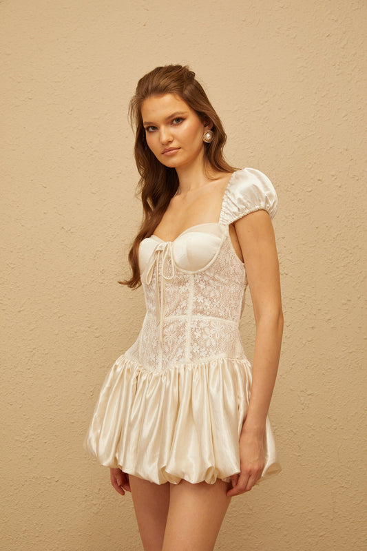 Irène White Lace Panel Satin Mini Dress