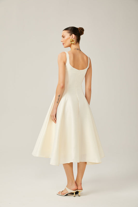 Léonor satin fitted flared midi dress