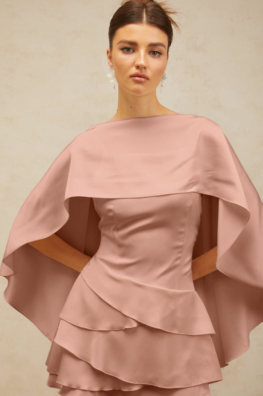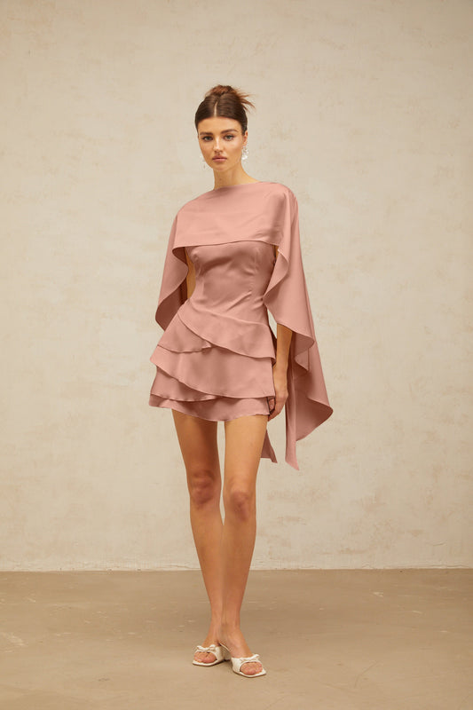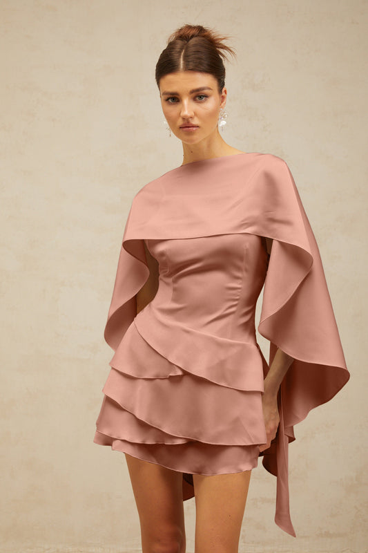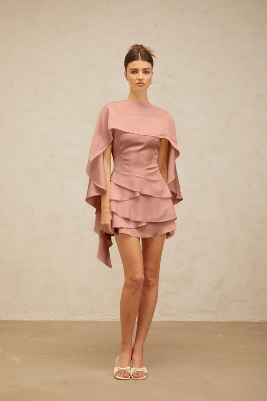 Lyna shawl-panel ruffled satin mini dress in Pink