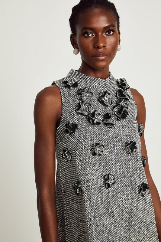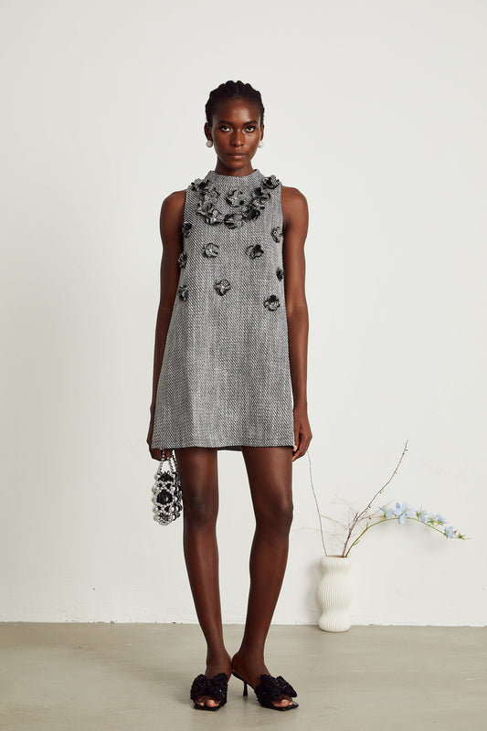 Nadège faux-flower sleeveless mini dress