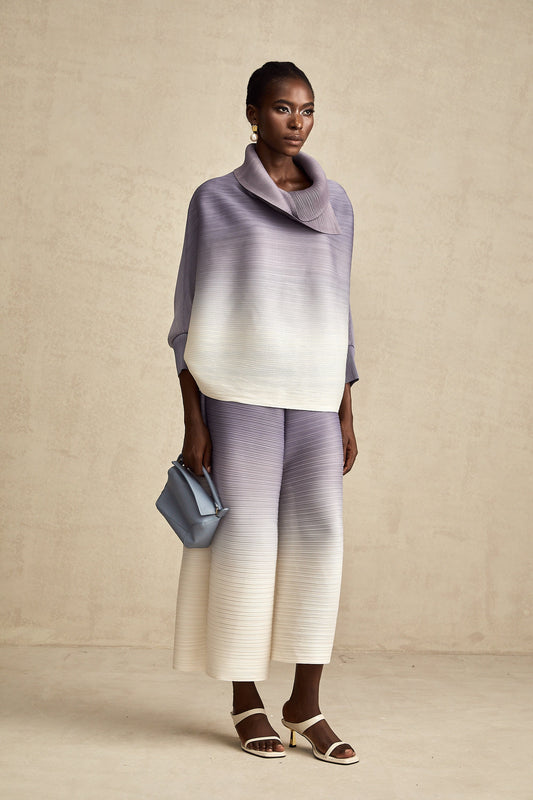 Agathe purple gradient wrinkled blouse & trousers matching set