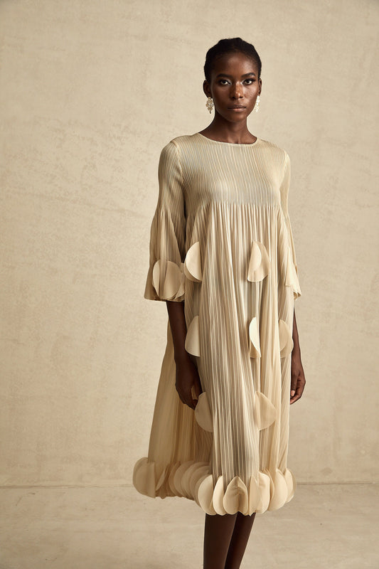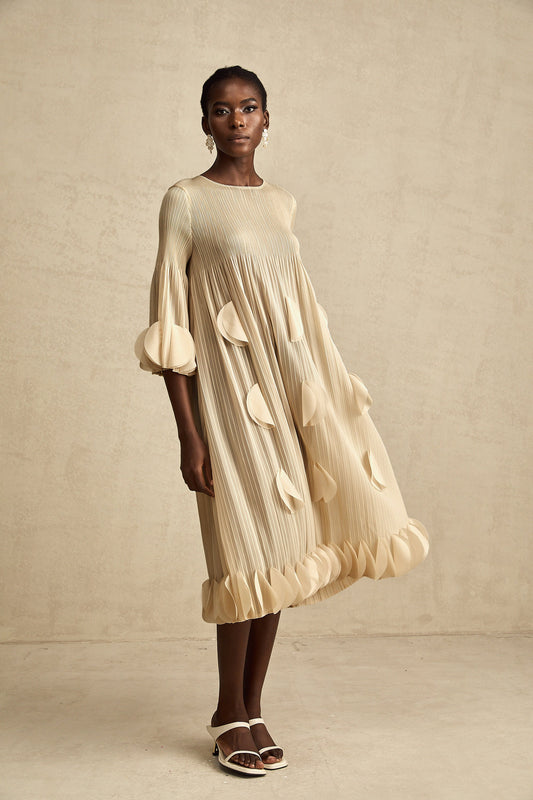 Alizée 3d-petal pleated midi dress