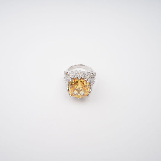 Amandine Yellow Halo-Set Gemstone Ring