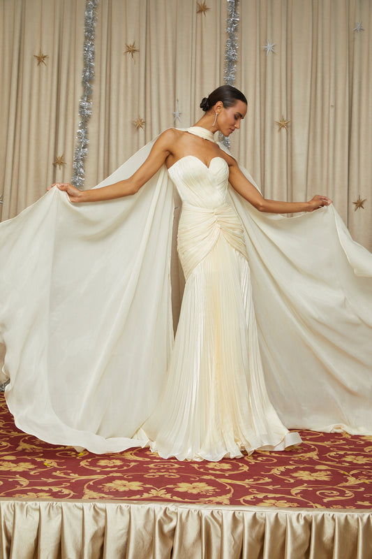 Roxane Yellow Cinched Waist Ruched Maxi Dress