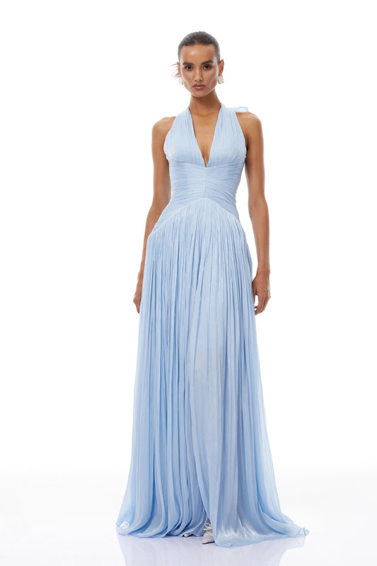 Térébenthine Blue Glossy Gathered Maxi Dress