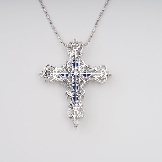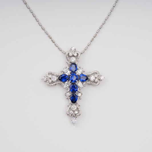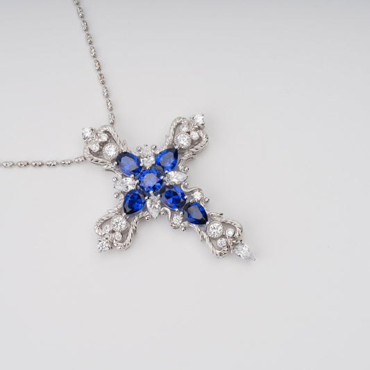 Tuulikki Blue Cross Shaped Pear Cut Gemstone Pendant Sterling Silver Necklace